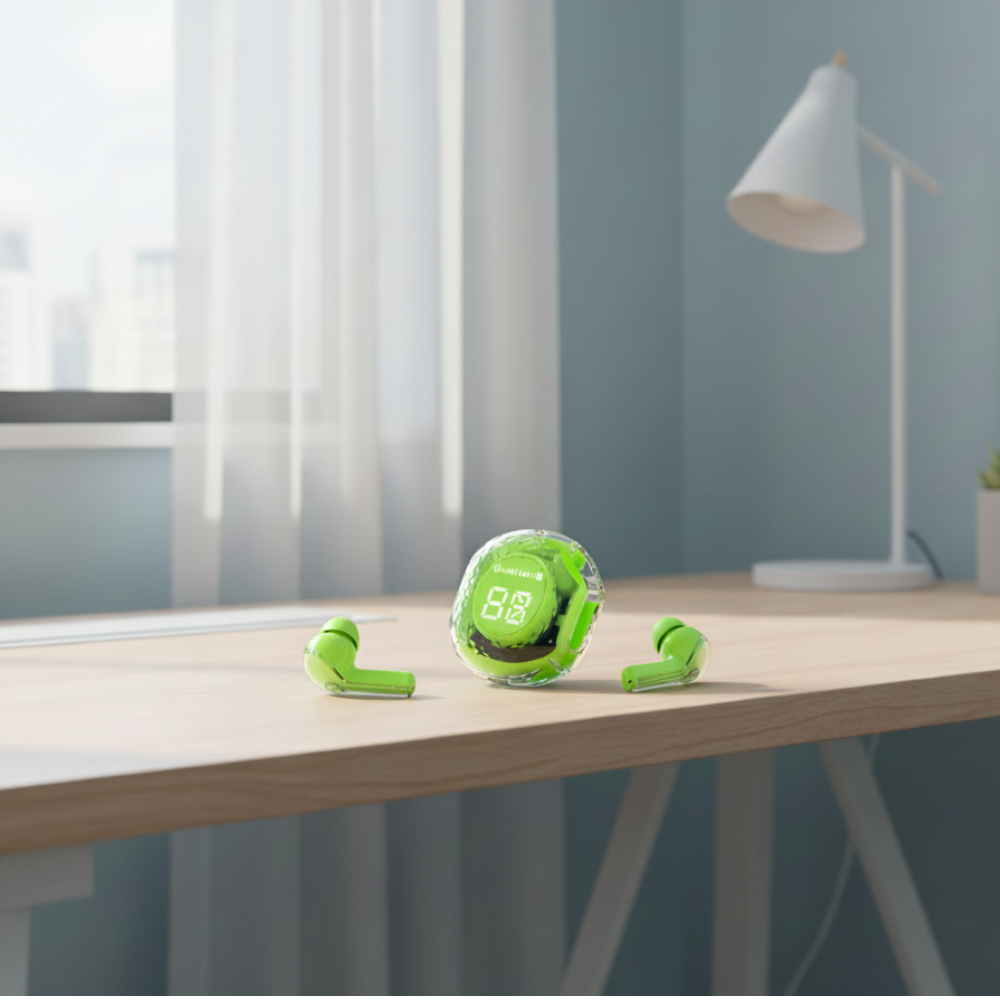 Audífonos inalámbricos con Bluetooth 5.3 y tecnología ENC de reducción de ruido, que brindan llamadas más claras y un sonido estéreo HD con bajos potentes. Cuentan con control táctil para música, volumen y llamadas, conexión automática y compatibilidad con dispositivos Android, iOS, PC y Mac.