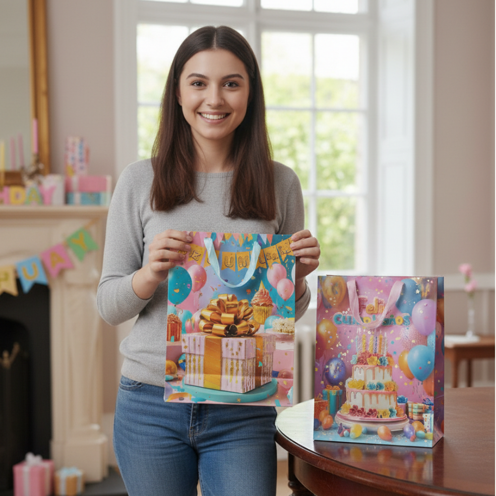 Bolsa de Regalo para Cumpleaños es la opción ideal para presentar tus obsequios de forma práctica y colorida. Con diseños alegres y festivos, es perfecta para celebrar cumpleaños de todas las edades y dar un toque especial a cada regalo.