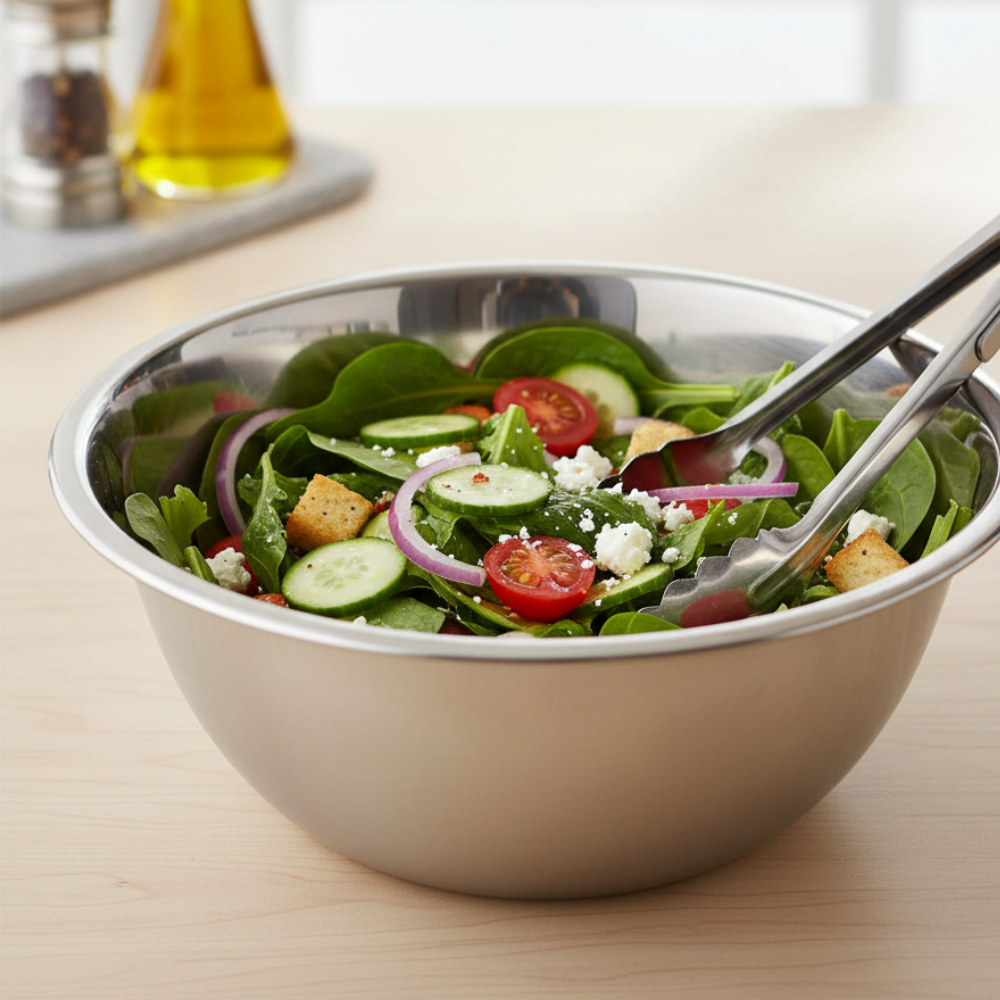 Su diseño práctico lo hace perfecto para uso diario, ya sea en la preparación de ensaladas, masas o ingredientes, tanto en el hogar como en cocinas profesionales.