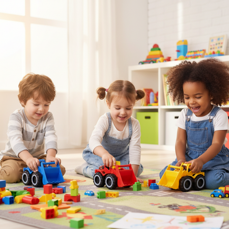 Carro constructor chico, ideal para el juego diario y para estimular la imaginación de los niños. Su tamaño práctico y diseño resistente permiten recrear divertidas escenas de construcción en cualquier lugar.