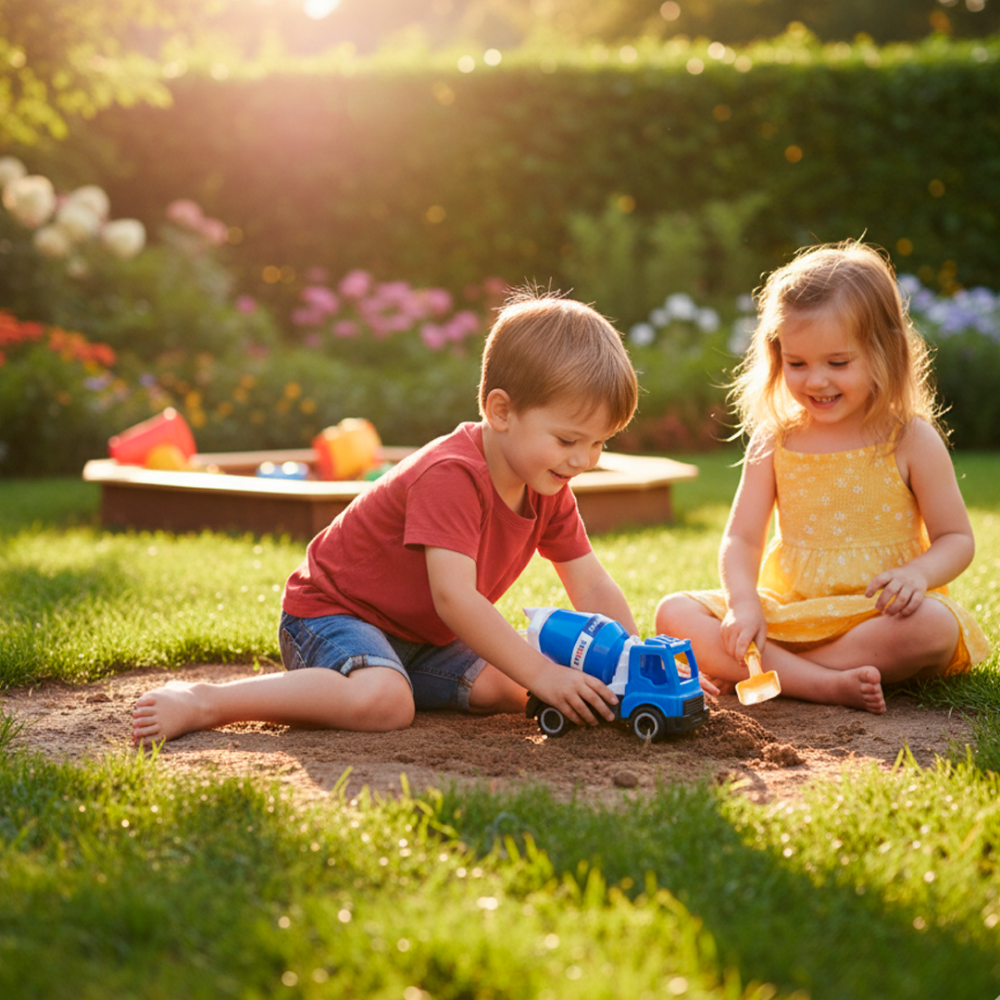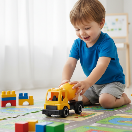 Carro constructor pequeño, ideal para manos pequeñas y para juegos de construcción llenos de imaginación. Su tamaño práctico y diseño resistente permiten horas de diversión recreando obras y aventuras.