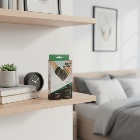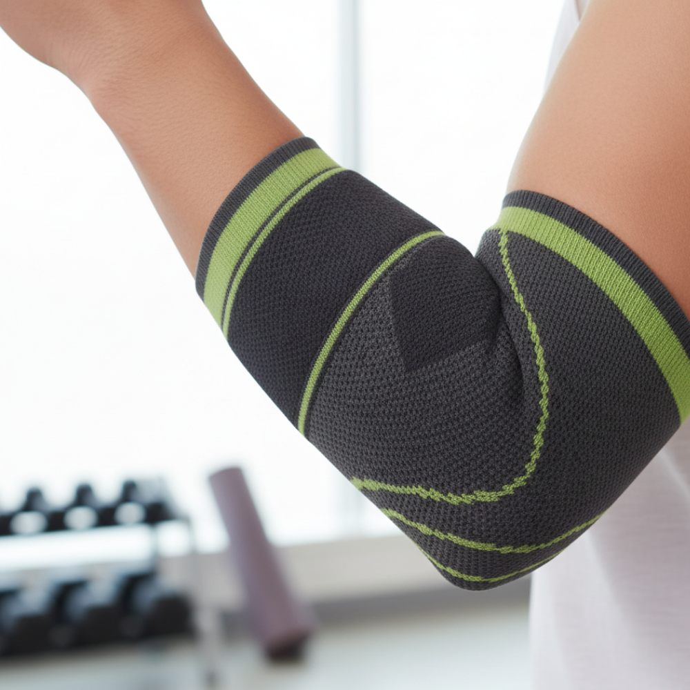 Codera ergonómica diseñada para brindar soporte avanzado a la articulación del codo. Su compresión controlada ayuda a: