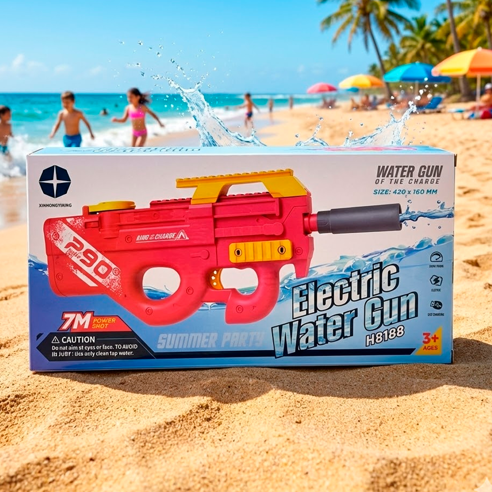 Prepárate para la máxima diversión bajo el sol con la pistola de agua eléctrica P90. Inspirada en el diseño de un subfusil P90, este juguete acuático combina estilo y potencia para horas de entretenimiento. Su llamativo cuerpo de color rosa vibrante se complementa con detalles en amarillo brillante en el riel superior y el cargador, dándole un aspecto único y moderno que destacará en cualquier combate de agua.