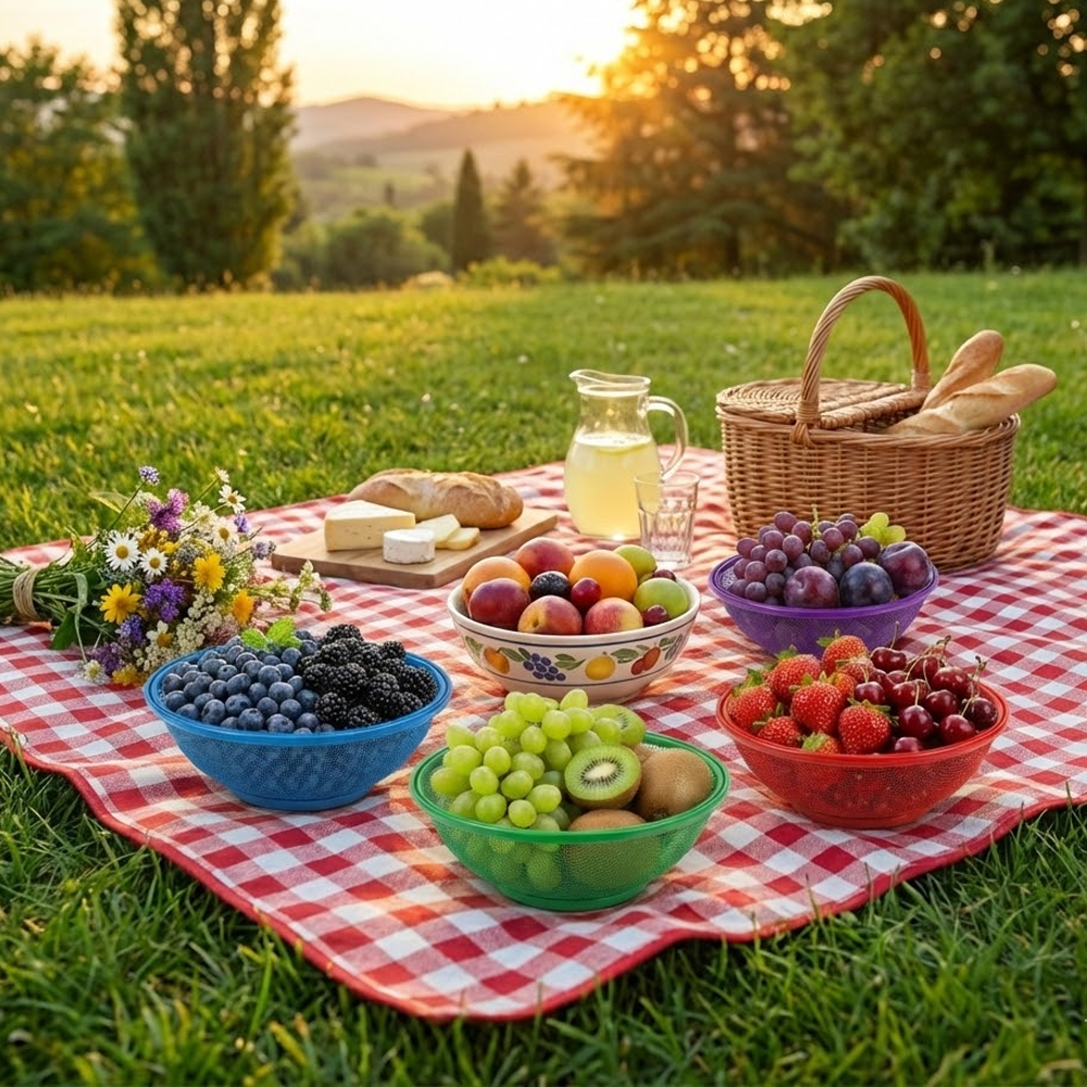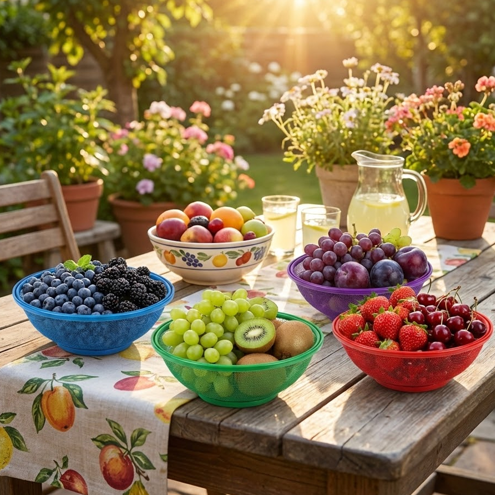 Versátil y Práctico: Ideal para usar en la encimera de la cocina, la mesa del comedor, o para llevar tus frutas, pan o snacks a picnics, barbacoas y cualquier reunión al aire libre.