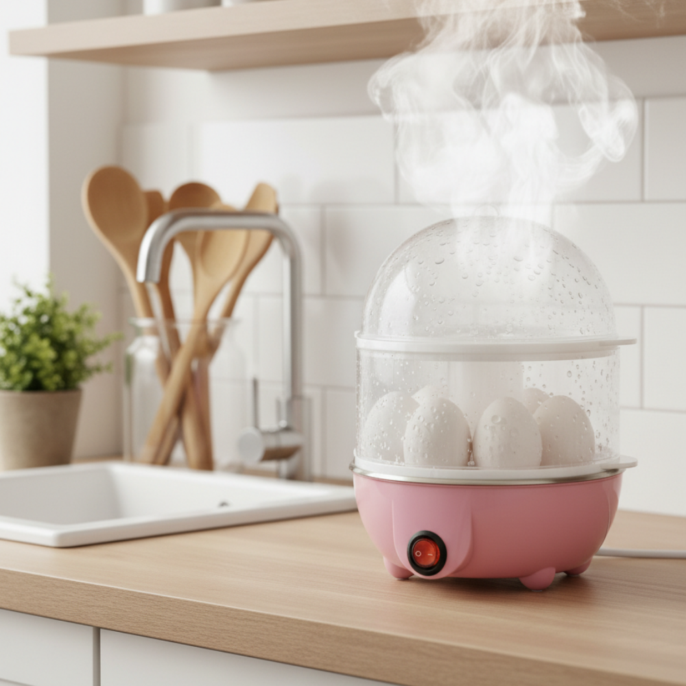 Prepara huevos perfectos en minutos de forma práctica y segura. Este hervidor de huevos te permite cocinarlos duros, medianos o pasados con solo presionar un botón, evitando el uso de ollas y fuego. Ideal para desayunos rápidos o comidas saludables.