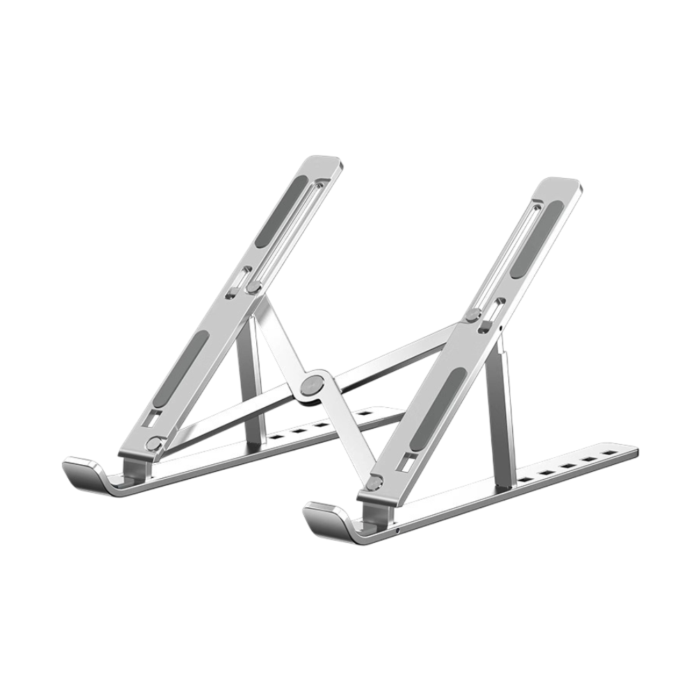 Soporte plegable y ajustable para laptop o tablet, diseñado para mejorar la comodidad y la ergonomía al momento de trabajar, estudiar o ver contenido. Su estructura en aleación de aluminio es ligera, resistente y fácil de transportar, lo que lo convierte en un accesorio ideal tanto para el hogar como para la oficina o incluso para llevar de viaje.