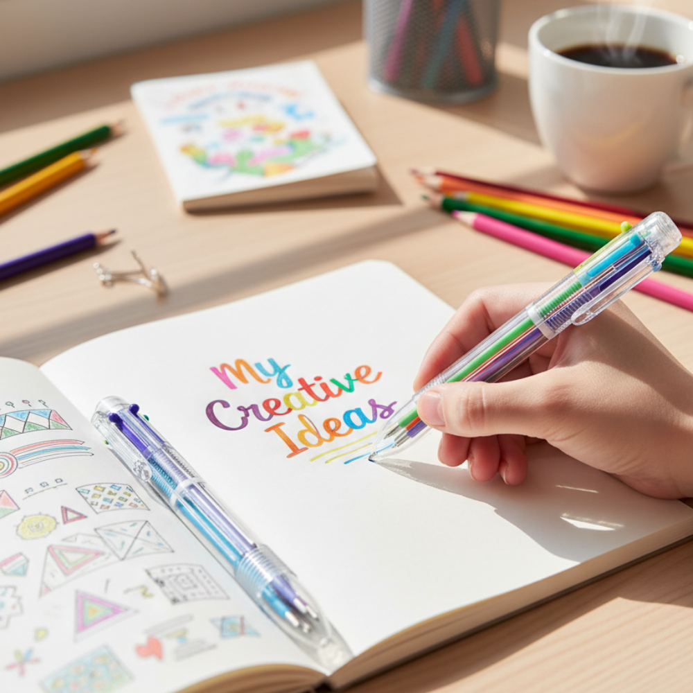 Lapicero Multicolor de 6 Colores es una herramienta práctica y versátil que reúne seis colores de tinta en un solo lapicero, ideal para escribir, subrayar y organizar apuntes de forma creativa y eficiente.