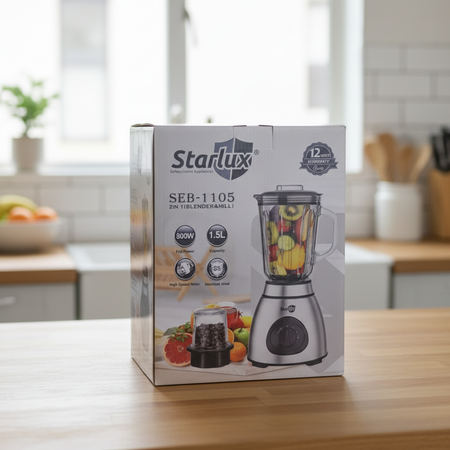 Prepara tus bebidas y recetas favoritas con esta potente licuadora multifuncional. Su vaso de 1.5 litros te permite mezclar grandes cantidades con facilidad, mientras que su accesorio triturador de café y granos añade versatilidad a tu cocina. Ideal para batidos, salsas, jugos y más.