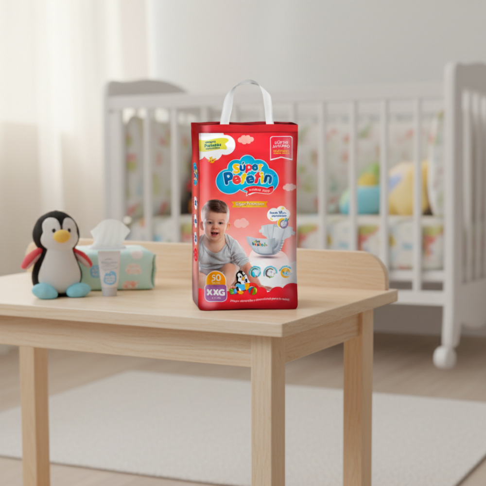 Los Pañales Super Petetín XXG ofrecen máxima protección, suavidad y comodidad para bebés de mayor tamaño. Gracias a su tecnología de alta absorción, mantienen la piel seca por más tiempo, ayudando a prevenir filtraciones e irritaciones, tanto de día como de noche.