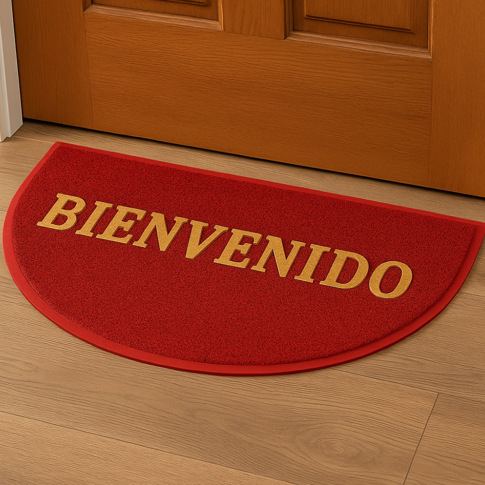 Recibe a tus visitas con estilo y practicidad gracias a este elegante felpudo semicircular con la palabra “Bienvenido” en relieve. Fabricado con materiales resistentes y de fácil limpieza, es ideal para mantener la entrada de tu hogar siempre impecable.