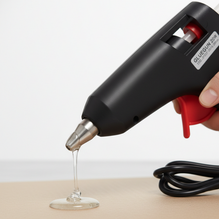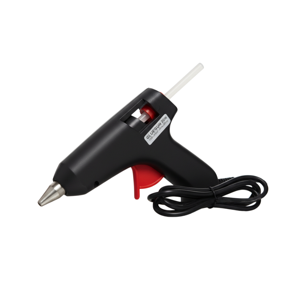 Herramienta práctica y versátil, ideal para trabajos de manualidades, reparaciones y proyectos DIY. La pistola de silicona permite un pegado rápido y preciso en diferentes superficies, siendo indispensable tanto en el hogar como en talleres.