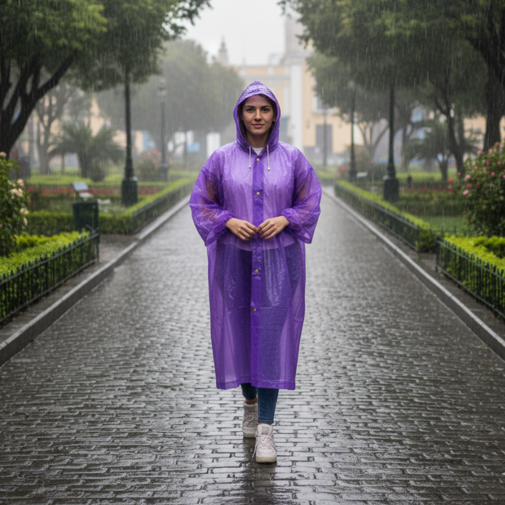 Protege tu ropa y mantente seco en días de lluvia con nuestro poncho impermeable para adultos. Fabricado con material resistente al agua y de secado rápido, ofrece una cobertura amplia que evita filtraciones y permite moverte con total comodidad.