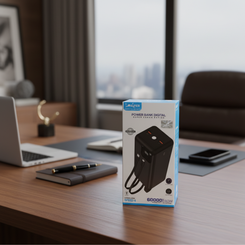 Mantén tus dispositivos siempre con energía gracias al Power Bank Digital Speed 4, un cargador portátil compacto, moderno y de alto rendimiento. Ideal para viajes, estudio, trabajo o uso diario.