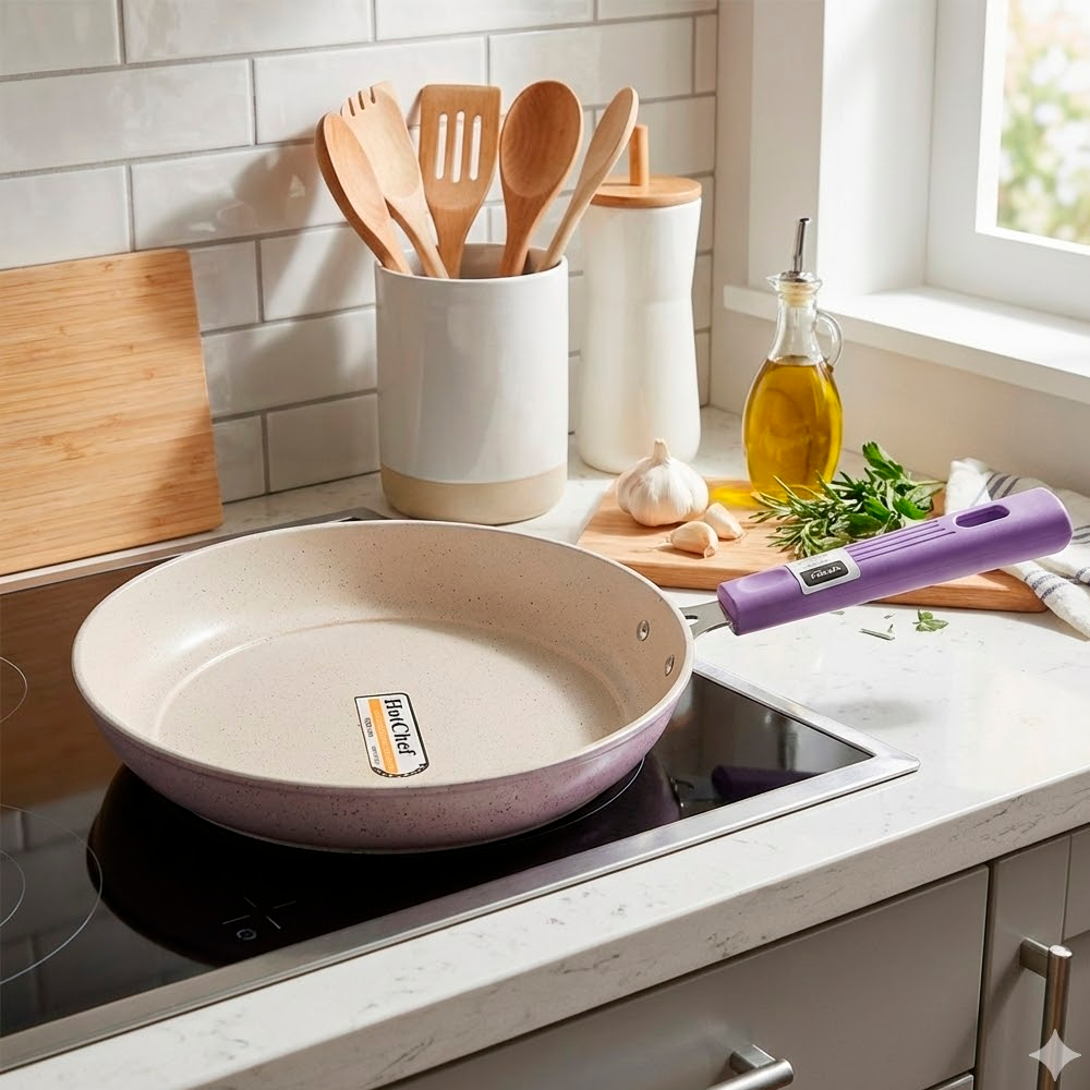 Dale un toque de color y modernidad a tu cocina con la sartén HotChef en un precioso tono lavanda. No es solo una cara bonita: esta sartén está diseñada para quienes buscan cocinar de forma más saludable y sin complicaciones.