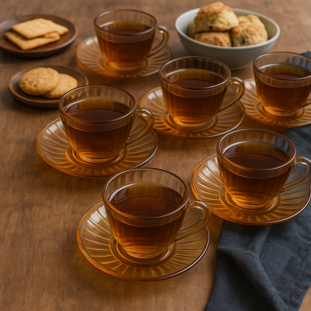 Elegancia y funcionalidad se unen en este completo set de 6 tazas con sus respectivos platos, perfecto para disfrutar café, té o infusiones con estilo. Fabricados con materiales resistentes y de alta calidad, presentan un diseño moderno y versátil que se adapta a cualquier ocasión, desde el desayuno diario hasta reuniones con invitados.