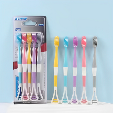 Set de cepillos de dientes ideal para toda la familia. Incluye varias unidades con cerdas suaves, diseñadas para una limpieza profunda y delicada de dientes y encías. Sus mangos ergonómicos facilitan un agarre cómodo y seguro durante el cepillado.