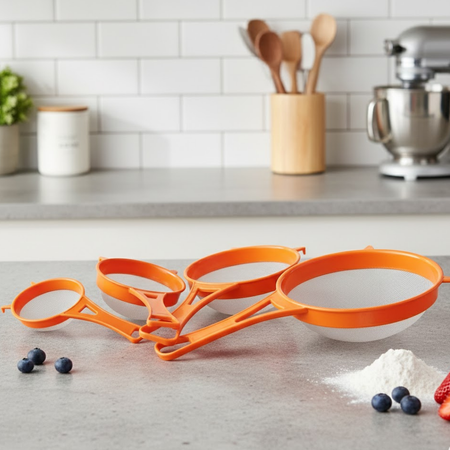Práctico set de coladores ideal para el uso diario en la cocina. Incluye 4 coladores de diferentes tamaños, perfectos para lavar, colar y escurrir alimentos como arroz, pasta, verduras y frutas.
