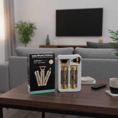 Set multifuncional de cuidado personal que combina tres herramientas esenciales en un solo equipo, ideal para uso doméstico y profesional. Permite cortar y arreglar el cabello, afeitar con precisión y recortar los vellos de nariz y orejas con comodidad.