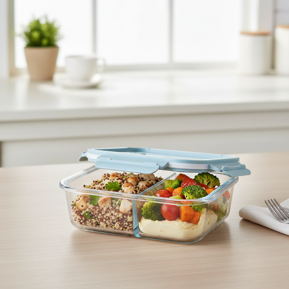 Fabricado en vidrio resistente, no absorbe olores ni sabores, ofreciendo una opción saludable y duradera para el uso diario. Ideal para el hogar, oficina o llevar tus comidas fuera de casa.