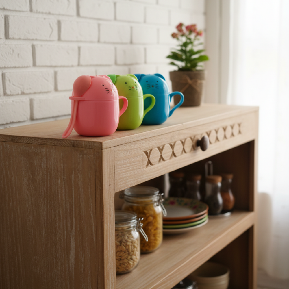 Set de Taza + Cuchara para Niños con Diseño de Gato es perfecto para hacer más divertidos los momentos del desayuno o la merienda. Su diseño tierno y colorido en forma de gatito encanta a los niños y convierte cada bebida en una experiencia especial.