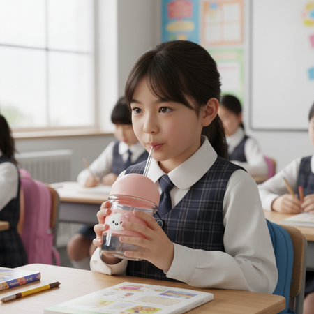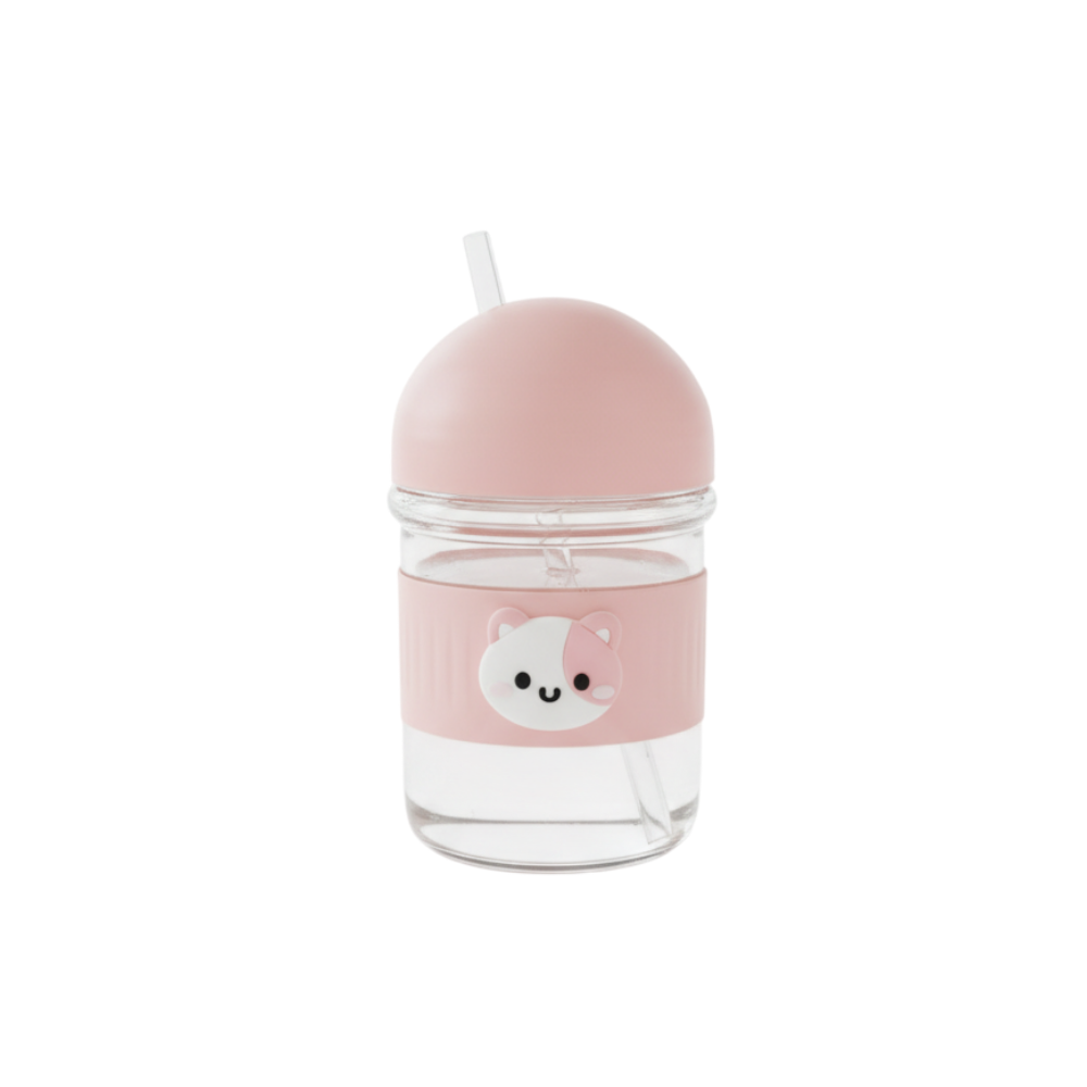 Hidrátate con estilo con este encantador tomatodo de vidrio estilo kawaii. Su diseño adorable y moderno lo convierte en el complemento perfecto para el día a día, ideal para llevar agua, jugos o infusiones frías de manera práctica y segura.