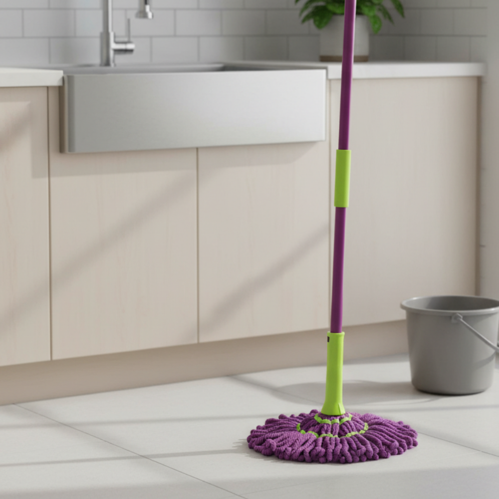 Trapeador de microfibra diseñado para una limpieza eficiente y práctica en todo tipo de superficies. Su material de alta absorción permite un secado rápido, dejando los pisos limpios y sin marcas, ideal para el uso diario en el hogar u oficina.