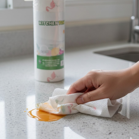 Práctico trapo de limpieza tipo papel toalla, ideal para mantener tus espacios limpios de manera rápida y eficiente. Perfecto para absorber líquidos, limpiar superficies y facilitar las tareas del hogar.